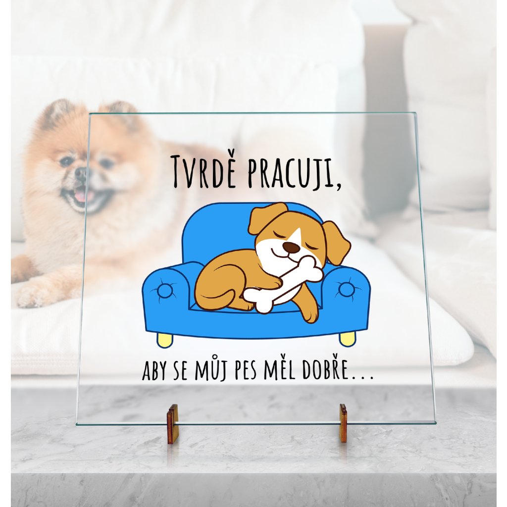 Dekorační skleněná deska - Tvrdě pracuji. Barevný pes