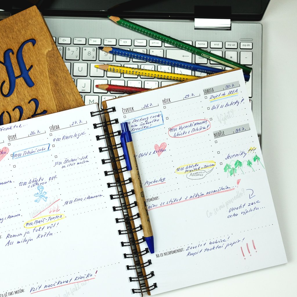 Chcete mít všechny své plány, úkoly i cíle přehledně na jednom místě? Naše dřevěné diáře vám to umožní v jedinečném stylu. Originální obal z přírodního dřeva si můžete nechat ozdobit iniciálami, jménem či vlastním textem, zvolit barvu podkladového papíru a od nás navíc získáte dřevěnou propisku jako dárek.
