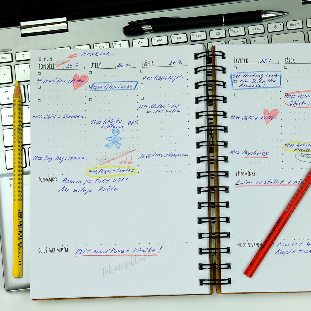 Chcete mít všechny své plány, úkoly i cíle přehledně na jednom místě? Naše dřevěné diáře vám to umožní v jedinečném stylu. Originální obal z přírodního dřeva si můžete nechat ozdobit iniciálami, jménem či vlastním textem, zvolit barvu podkladového papíru a od nás navíc získáte dřevěnou propisku jako dárek.