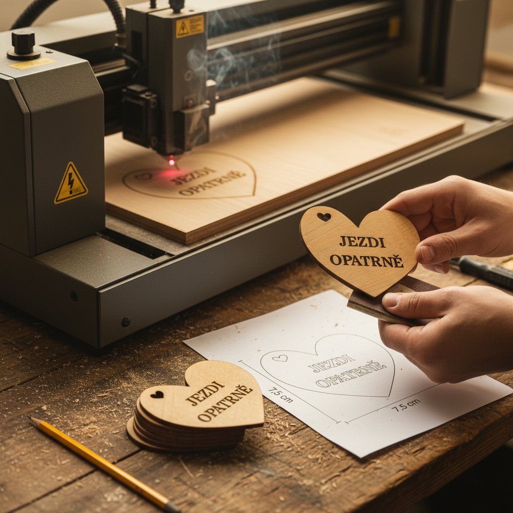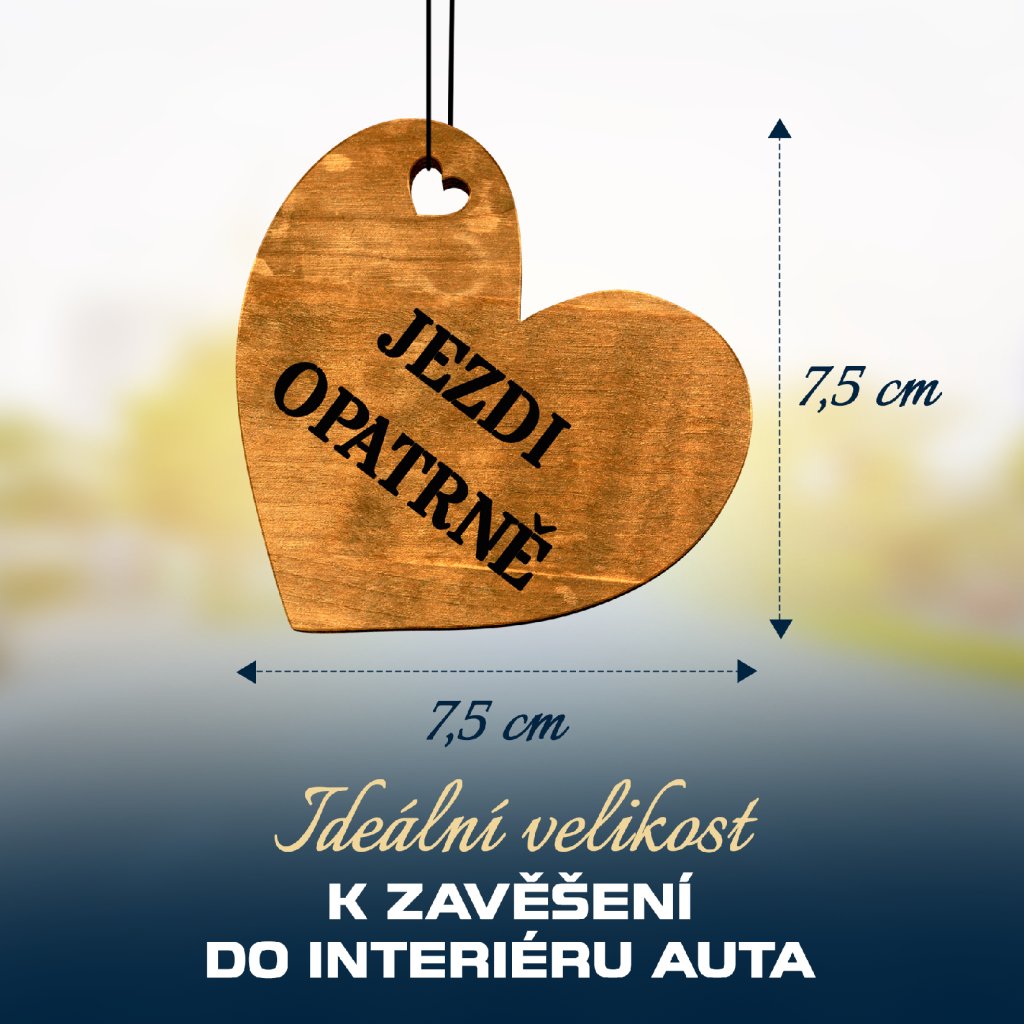 Dřevěná vůně do auta – Jezdi opatrně srdce