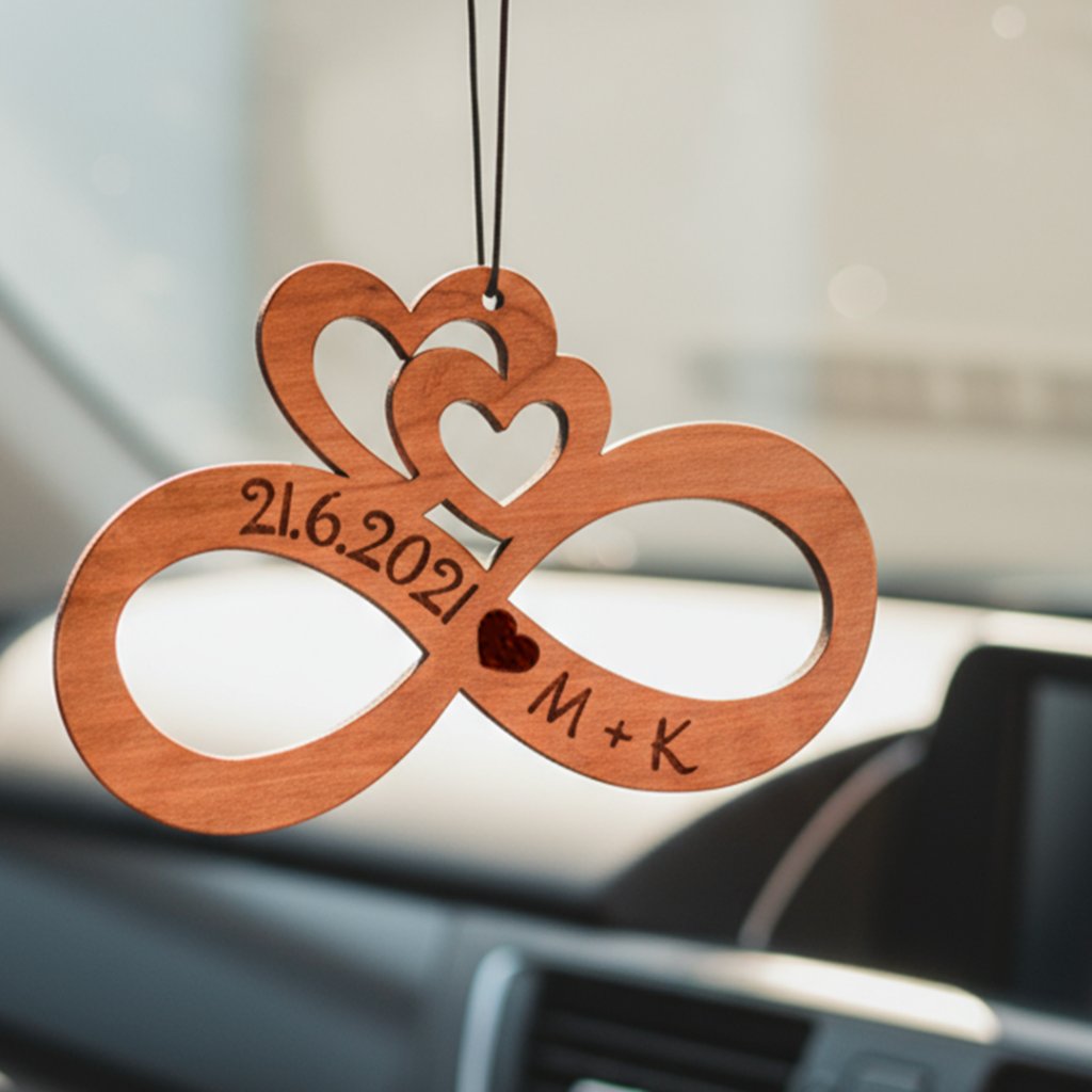 Voňavý dekorace do auta ve tvaru nekonečna je víc než jen stylový doplněk. Díky možnosti vlastního textu z ní snadno vytvoříte osobní dárek s hlubším významem – třeba vyznání lásky, důležité datum nebo přání bezpečné cesty.