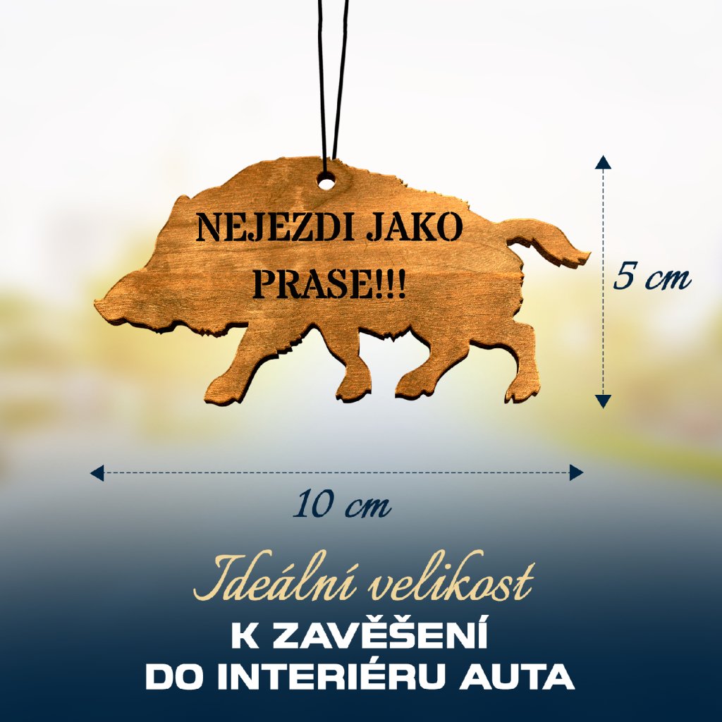 Znáte někoho, kdo jezdí doslova jako prase? Voňavý talisman do auta ve tvaru prasátka s nápisem "Nejezdi jako prase!!!" je tím pravým dárkem! Příjemně provoní interiér a vykouzlí úsměv na tváři.