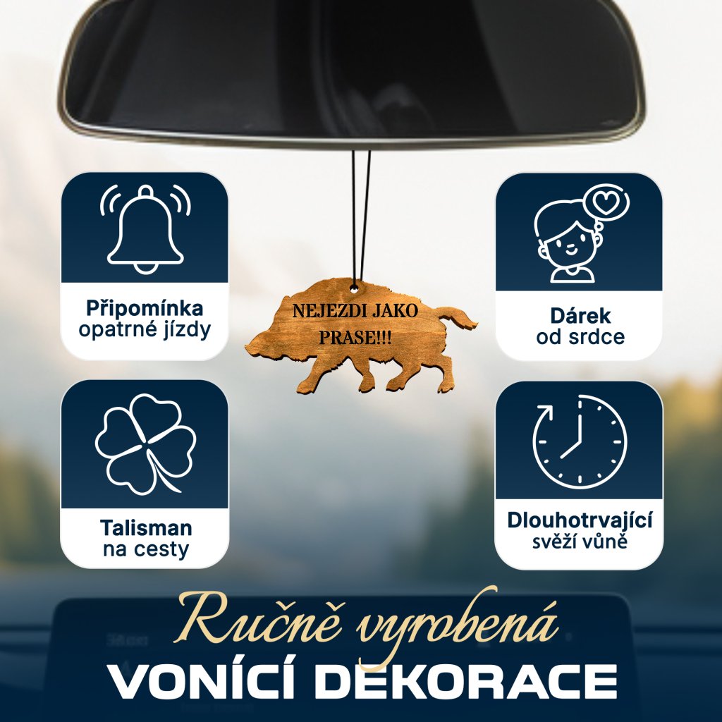- Originální dřevěný přívěsek není jen osvěžovačem, ale i stylovým doplňkem a ochranným talismanem na cesty.