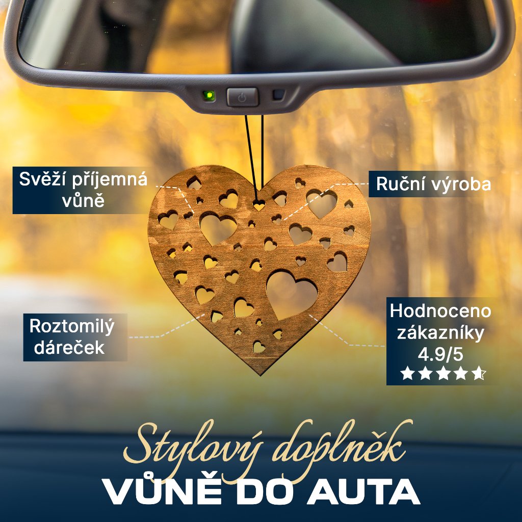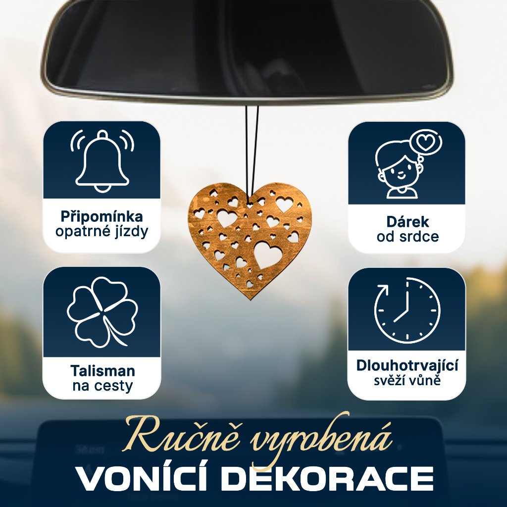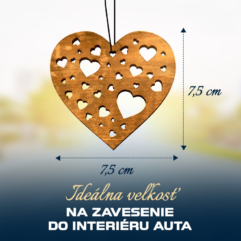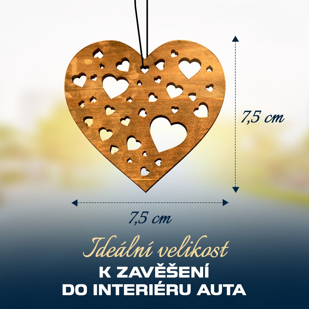Dřevěná vůně ve tvaru srce s malými srdíčky nádherně a dlouho voní a je dárkem, který potěší hned několikrát – svou symbolikou, designem i svěží dřevěnou vůní.
