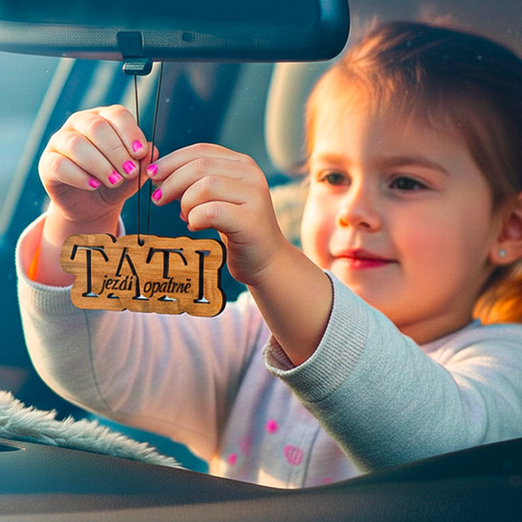 Dřevěná vůně do auta – Tati jezdi opatrně