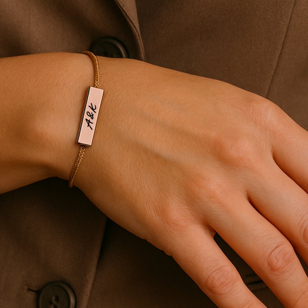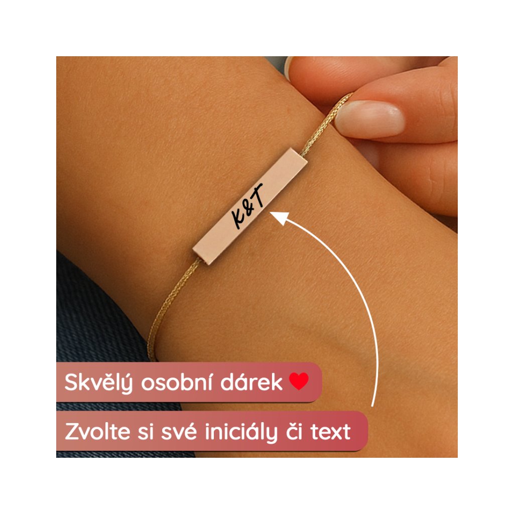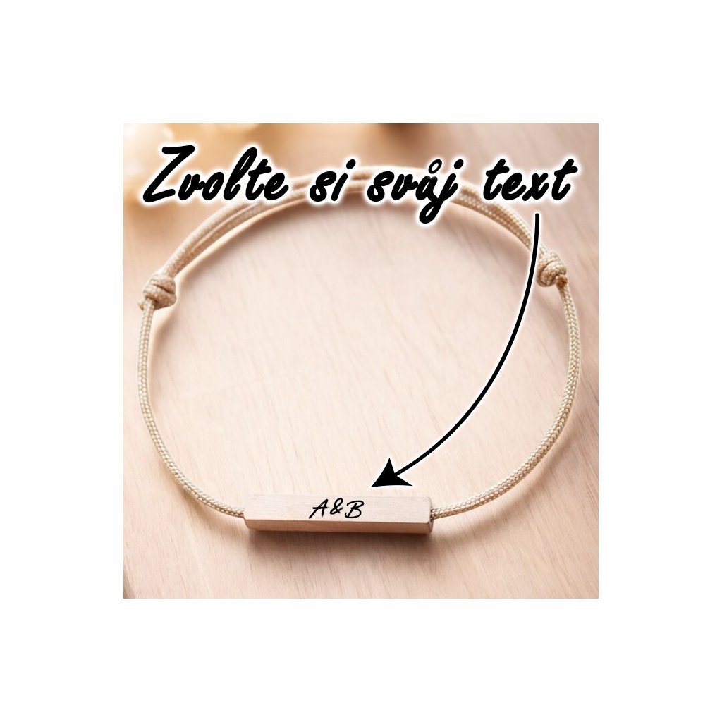 Minimalistický černý náramek na šňůrce, na který si můžete nechat vyrýt vlastní text - jméno, datum nebo jiný nápis podle sebe. Ideální k narozeninám, výročí nebo jako symbolický osobní dárek.