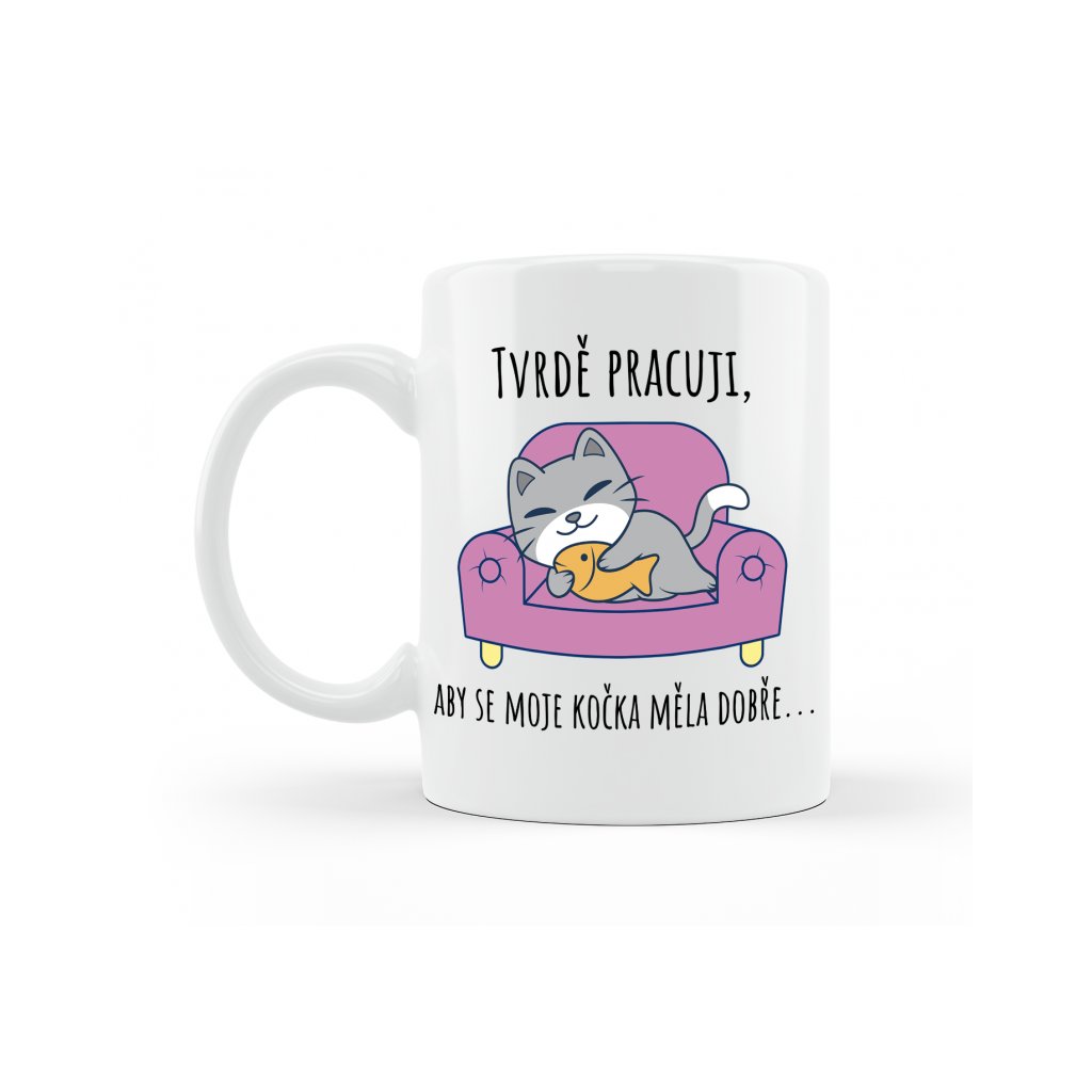 Hrneček Tvrdě pracuji. Barevná Kočka