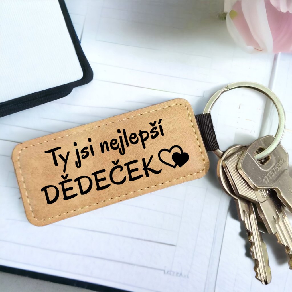 Kožená klíčenka s vygravírovaným vzkazem „Ty jsi nejlepší DĚDEČEK“