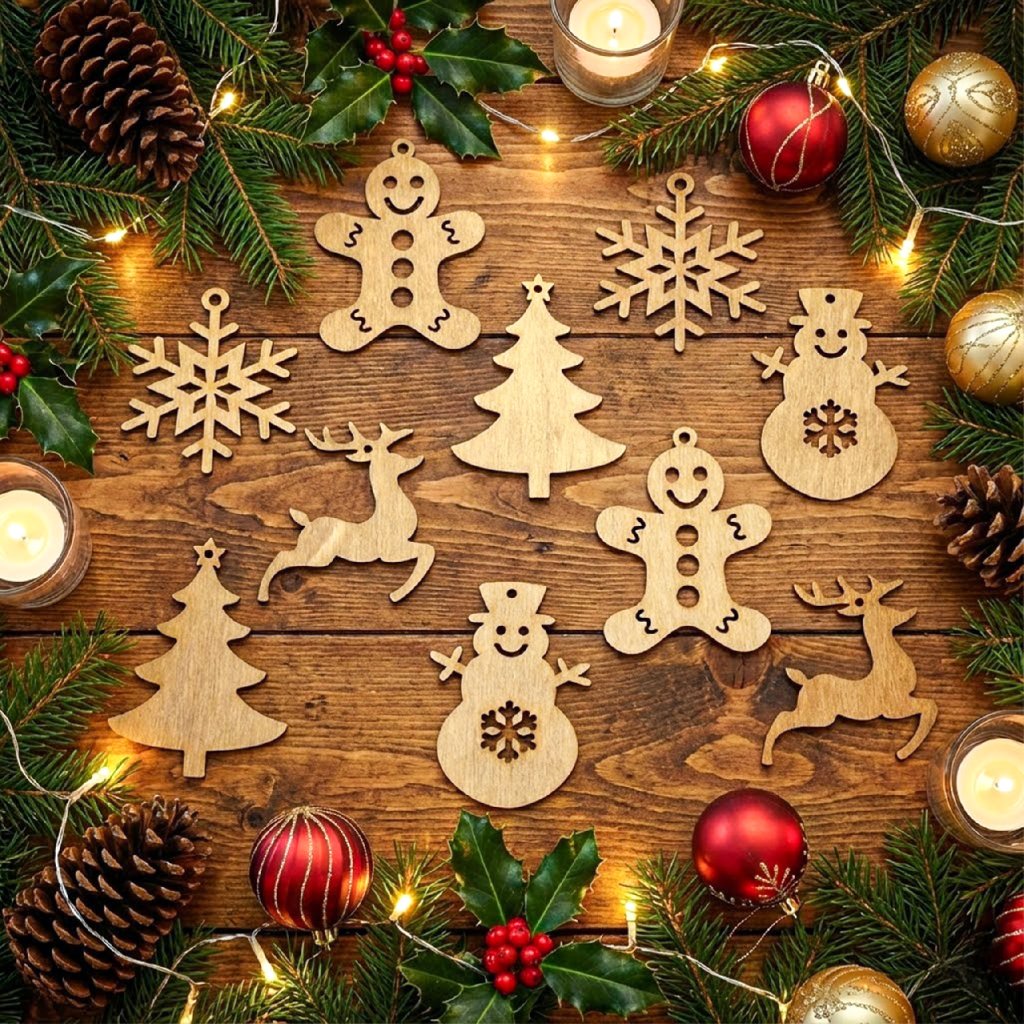 🎁 Elegantní dřevěné vánoční ozdoby – sada 10 kusů