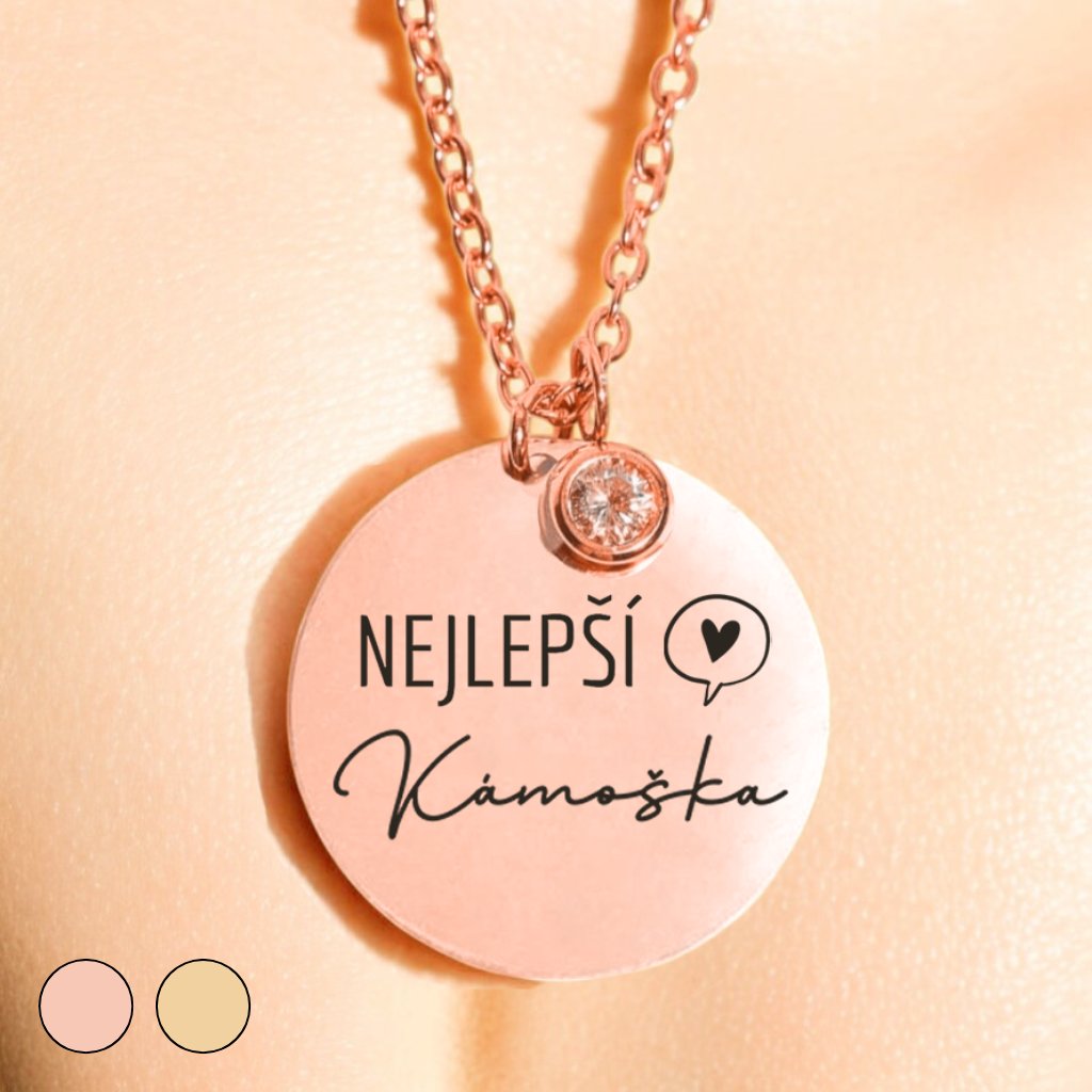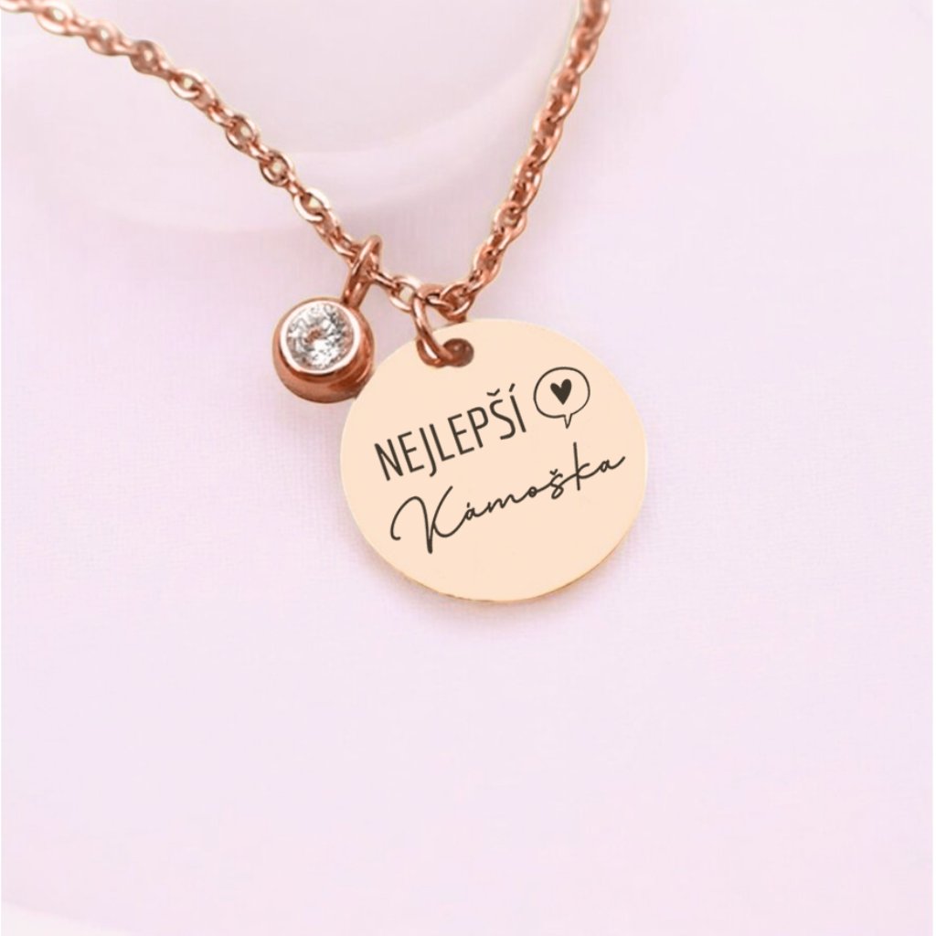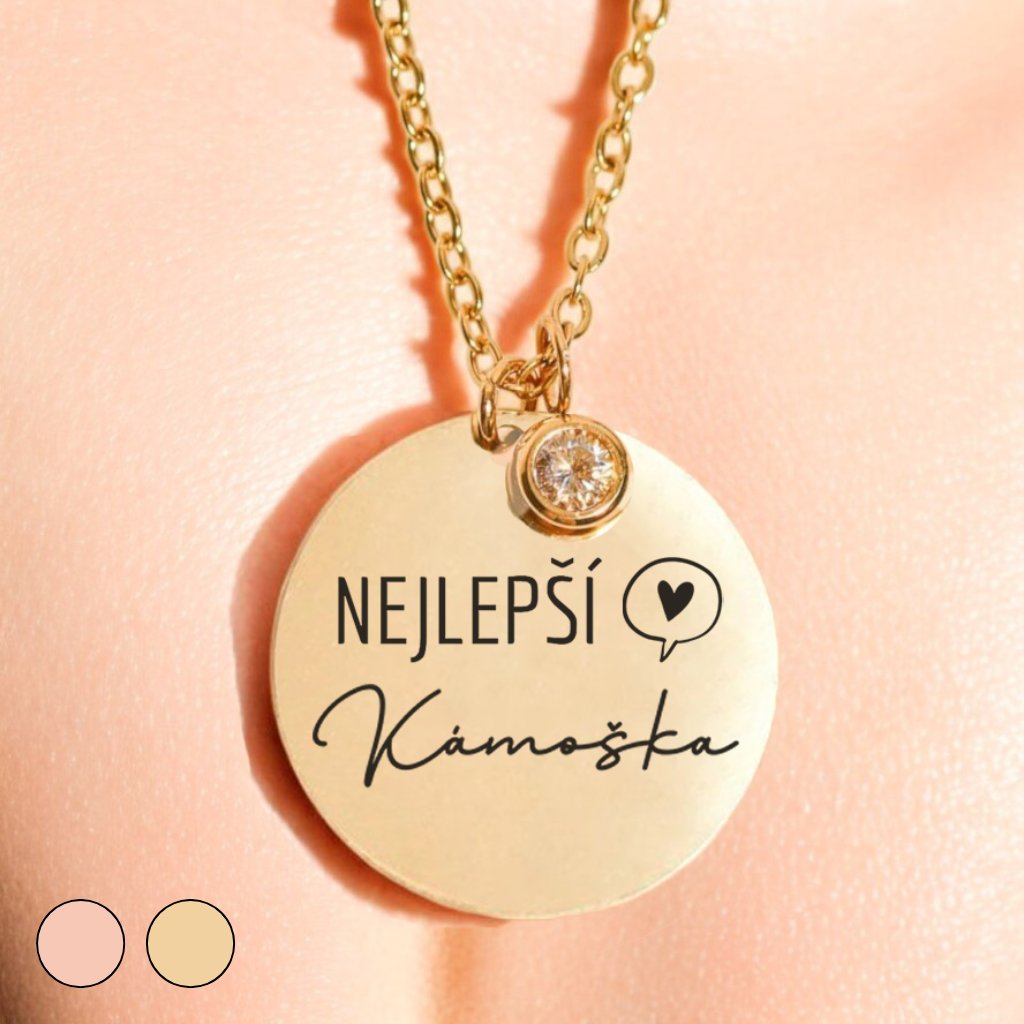 Luxusní Náhrdelník - Medailonek na řetízku se zirkonem - Kámoška