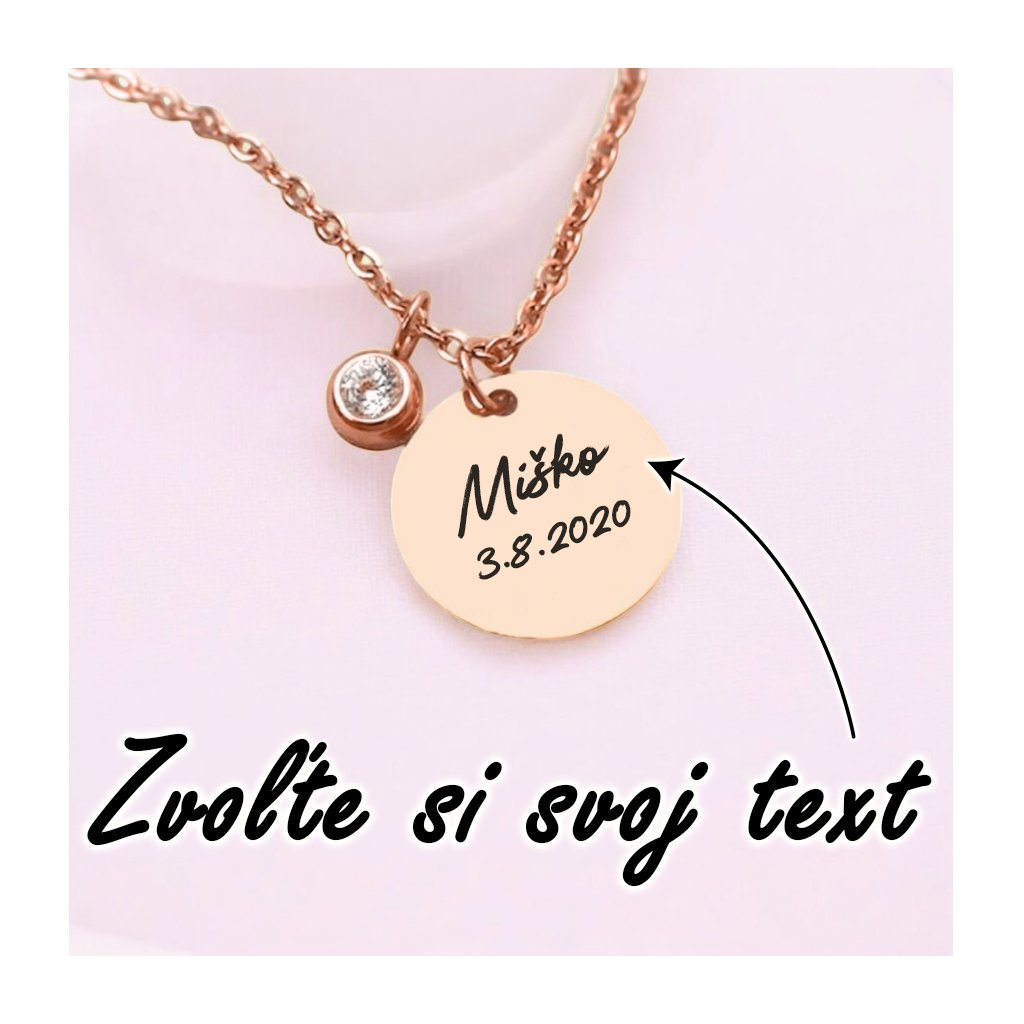 Luxusní náhrdelník - Medailonek na řetízku se zirkonem - S vlastním textem datum