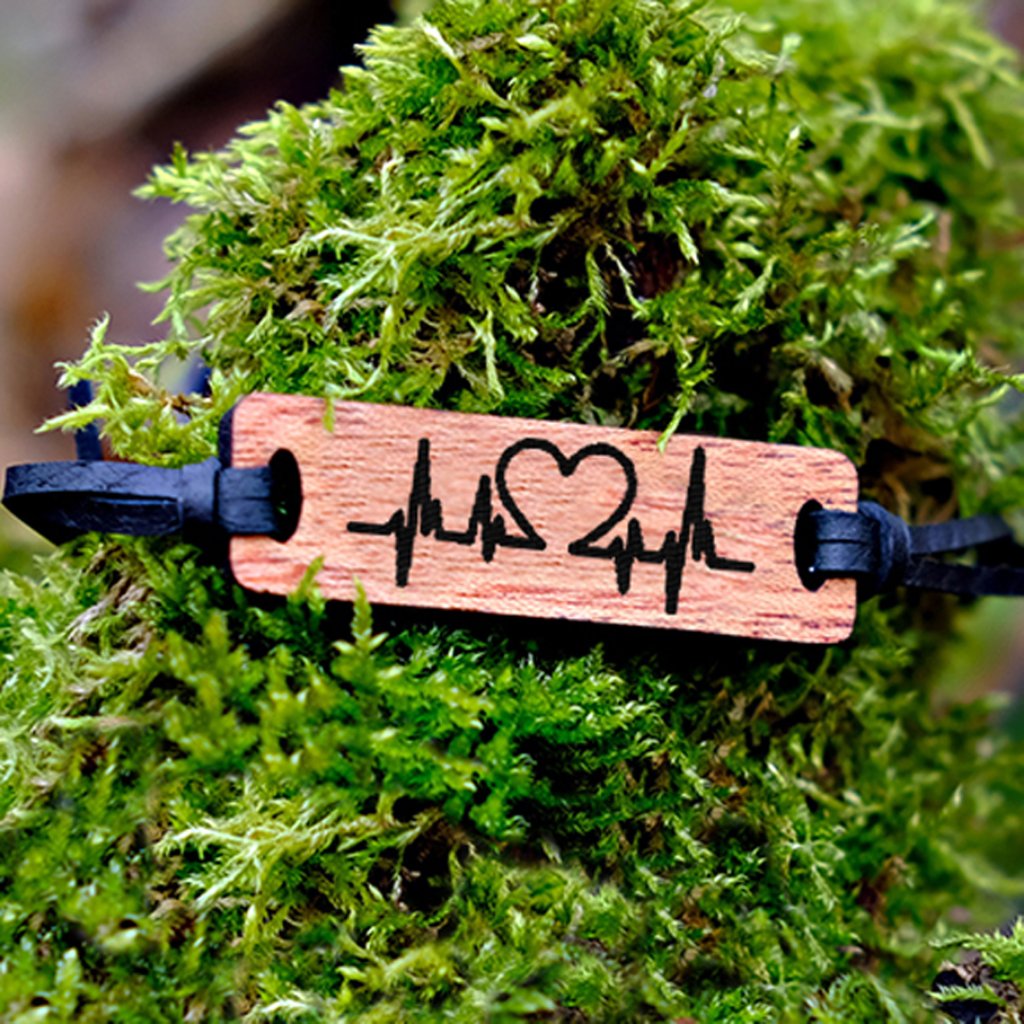 Život je rytmus, který udává láska. Elegantní dřevěný náramek se symbolem EKG a srdce je něžnou připomínkou toho, co je v životě opravdu důležité. Noste ho jako osobní talisman nebo darujte někomu, kdo rozechvívá vaše srdce.