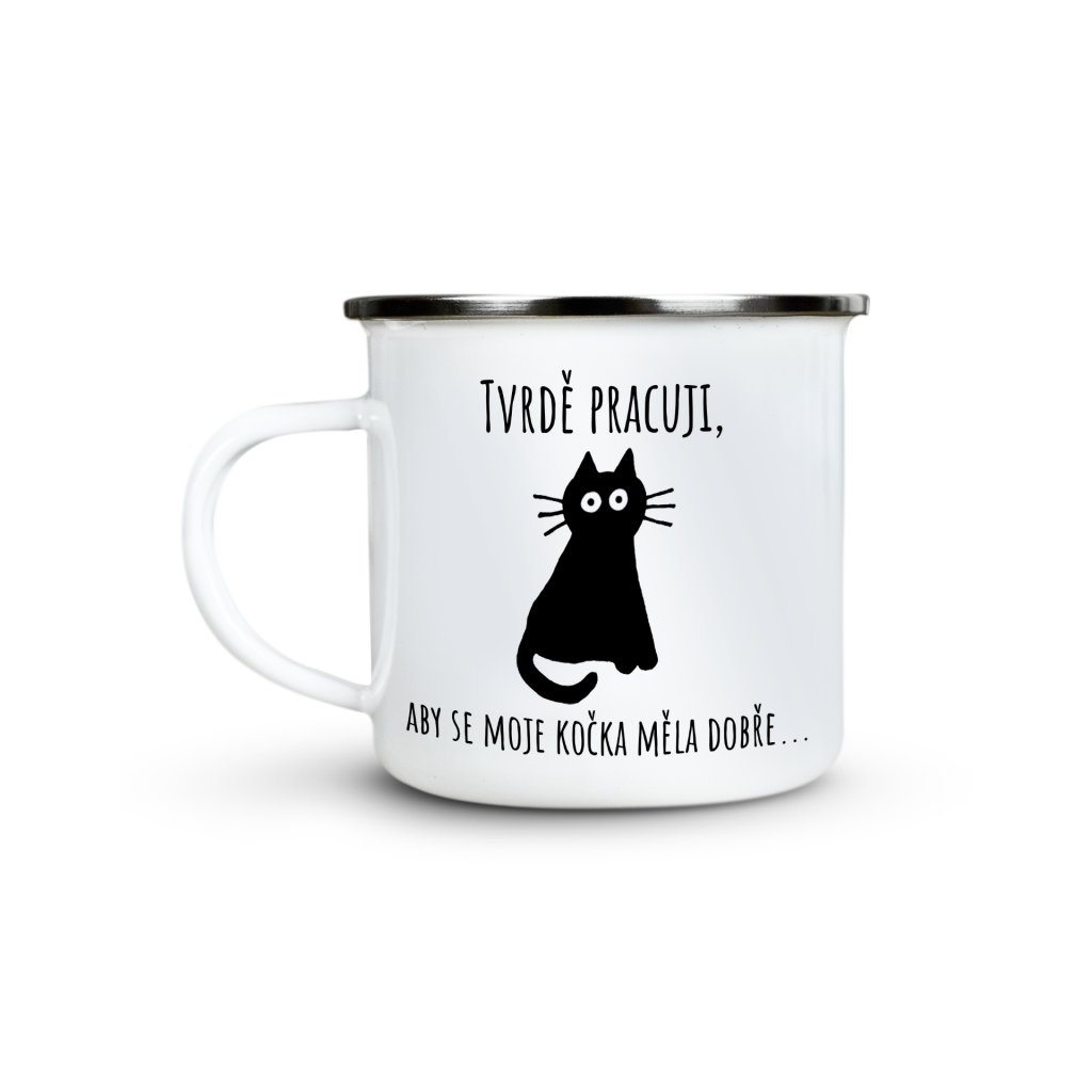 Jste hrdý kočičí majitel? Pak je tento plecháček jako stvořený právě pro Vás! Vtipný nápis a roztomilá ilustrace připomenou, proč každý den vkládáte tolik úsilí do práce – přece pro pohodlí své kočky.