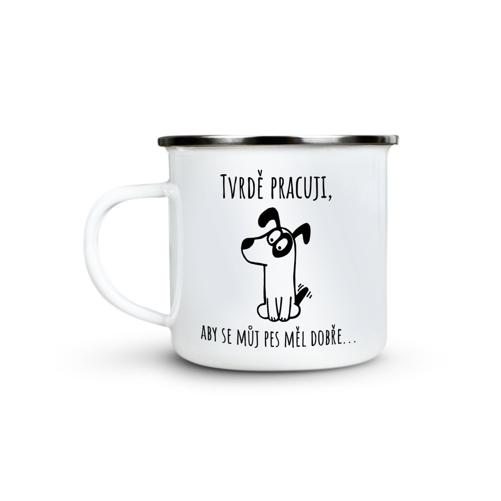 Jste hrdý psí páníček? Pak je tento plecháček jako stvořený právě pro Vás! Vtipný nápis a roztomilá ilustrace připomenou, proč každý den vkládáte tolik úsilí do práce – přece pro pohodlí svého psa.