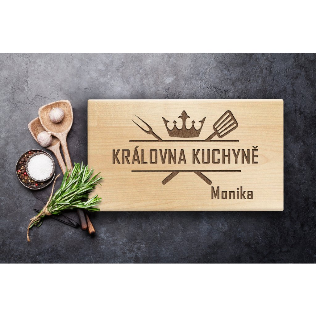 Některé ženy vládnou kuchyni s takovou grácií, že by jim Michelinské hvězdy padaly samy do klína. A právě pro takovou vládkyni je tohle prkénko – stylové, osobní a s jasným poselstvím: „Tady kraluje Monika!“ (nebo jakékoli jiné jméno, které jí patří). Na prkénko si zvolte vlastní jméno.
