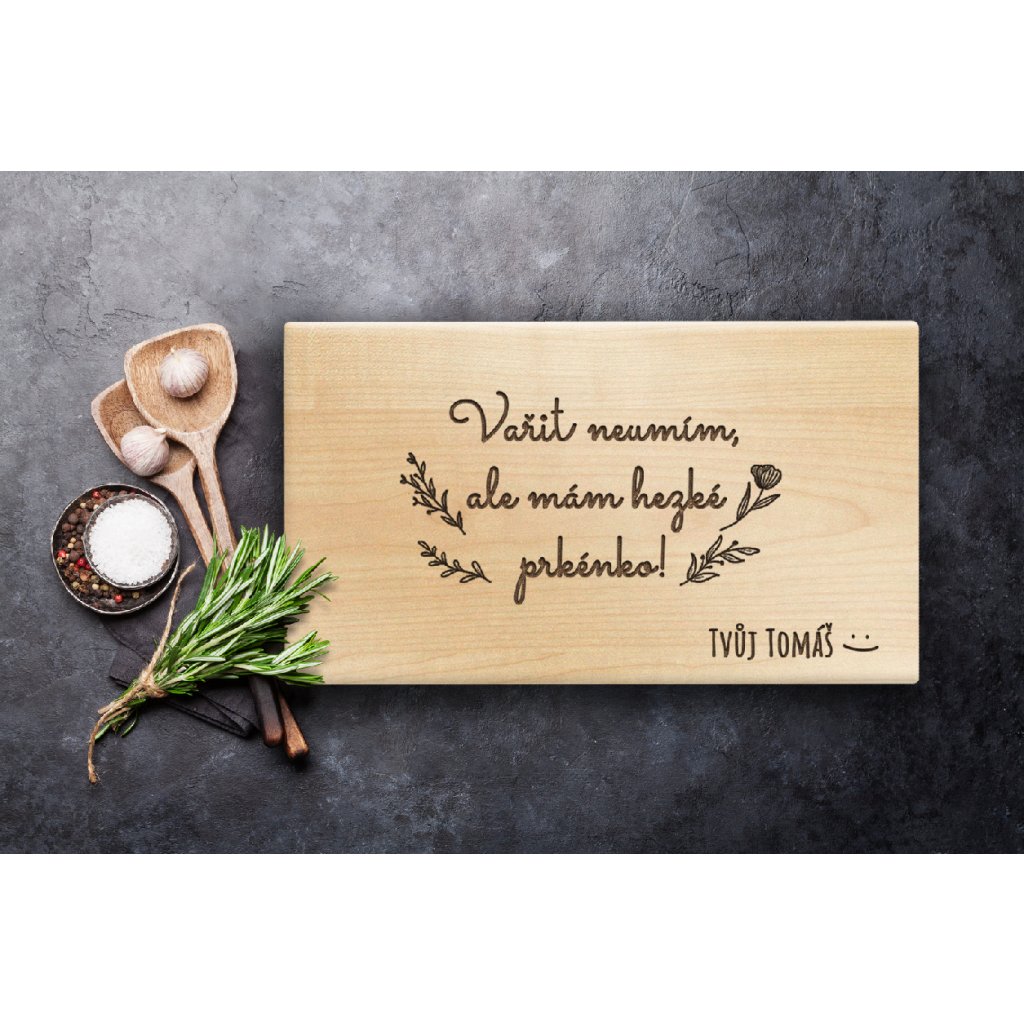 Trefa do černého! Tohle gravírované prkénko s nápisem „Vařit neumím, ale mám hezké prkénko!“ říká vše – s nadsázkou, šarmem a úsměvem. Ideální dárek od někoho, kdo se nebojí přiznat (ne)kuchařské dovednosti, ale rád udělá radost dárkem od srdce.