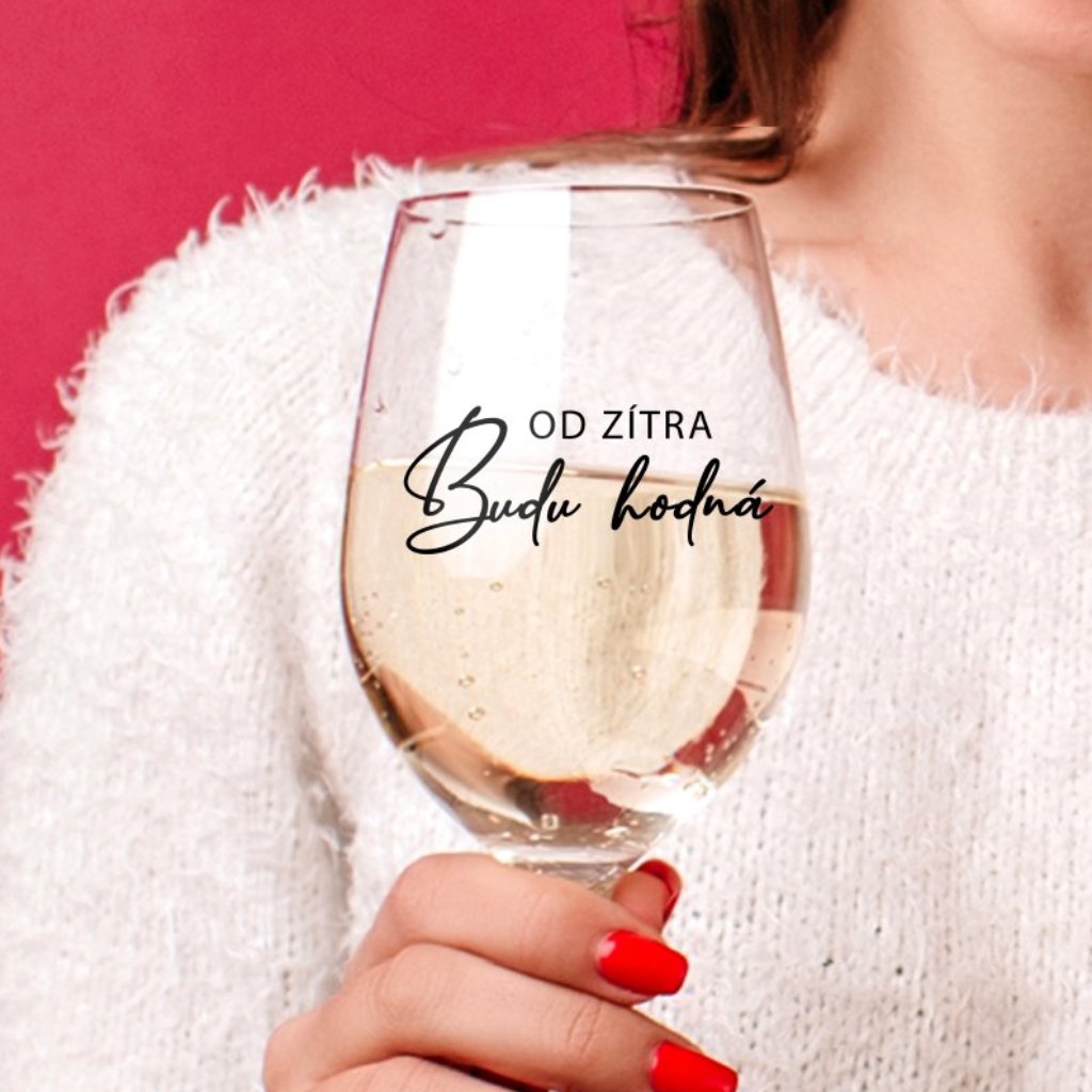 Čirá sklenice na víno 450ml - Od zítra budu hodná