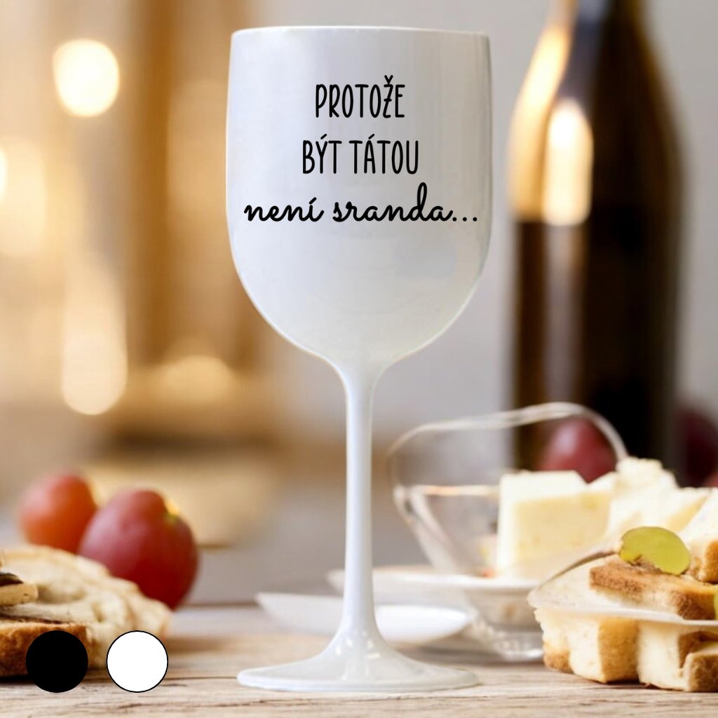 Hledáte vkusný dárek pro milovníky vína, který nikdo nemá? Tato nerozbitná sklenička v sobě spojuje styl, kvalitu a nápaditý humor. Vtipný text "PROTOŽE BÝT TÁTOU není sranda..." vykouzlí úsměv na tváři a dodá každému doušku vína tu správnou jiskru – ať už ji darujete tatínkovi, kolegovi, kamarádovi nebo si ji necháte jen pro sebe.